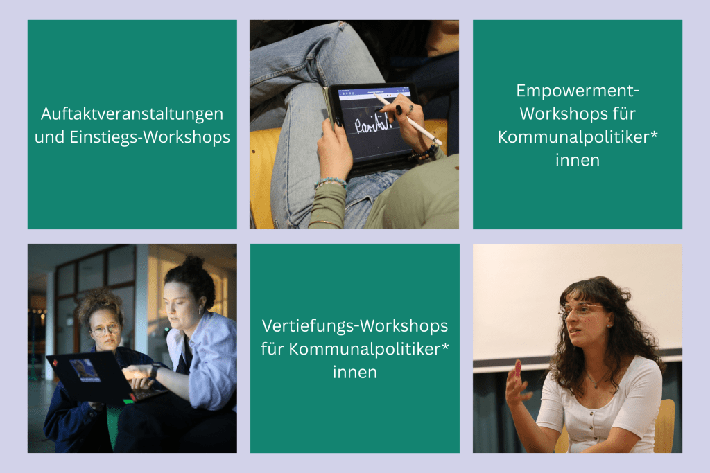 Die kostenfreien Angebote richten sich an Parteien, Stiftungen, Vereine, Gewerkschaften, zivilgesellschaftliche Akteur:innen, Verwaltungsmitarbeitende und weitere demokratische Organisationen. Gemeinsam bringen wir mehr Vielfalt, Teilhabe und Parität in unsere demokratischen Strukturen und verändern die politische Kultur, sodass sich alle gerne einbringen!