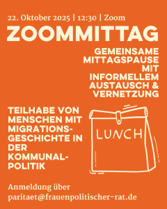 Die Anmeldung zur Veranstaltung am 22. Oktober kann formlos per Mail (paritaet@frauenpolitischer-rat.de) gestellt werden.